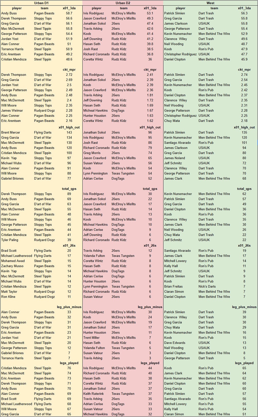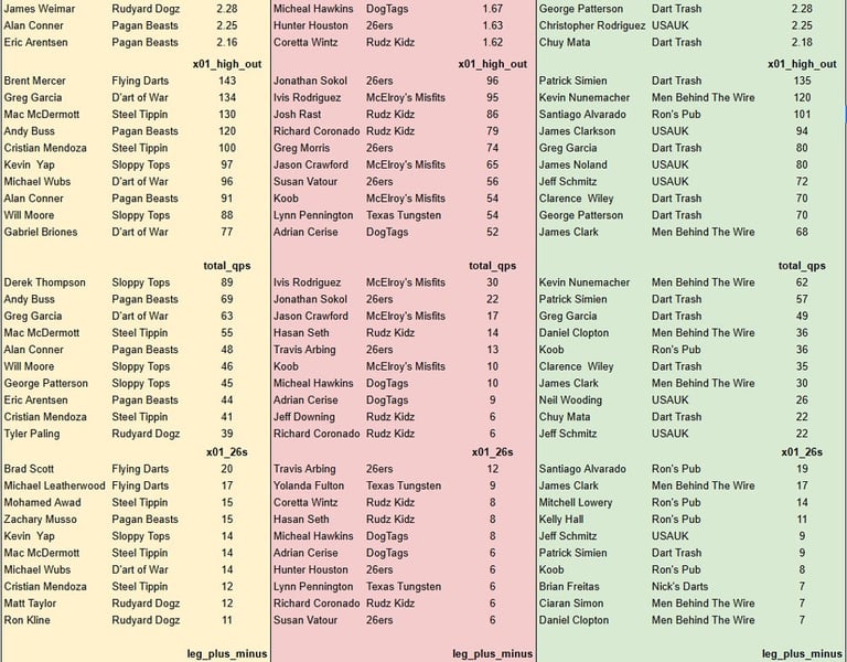 A weekly update on the current leaders in the Spring 2026 Space City Darts Association leagues
